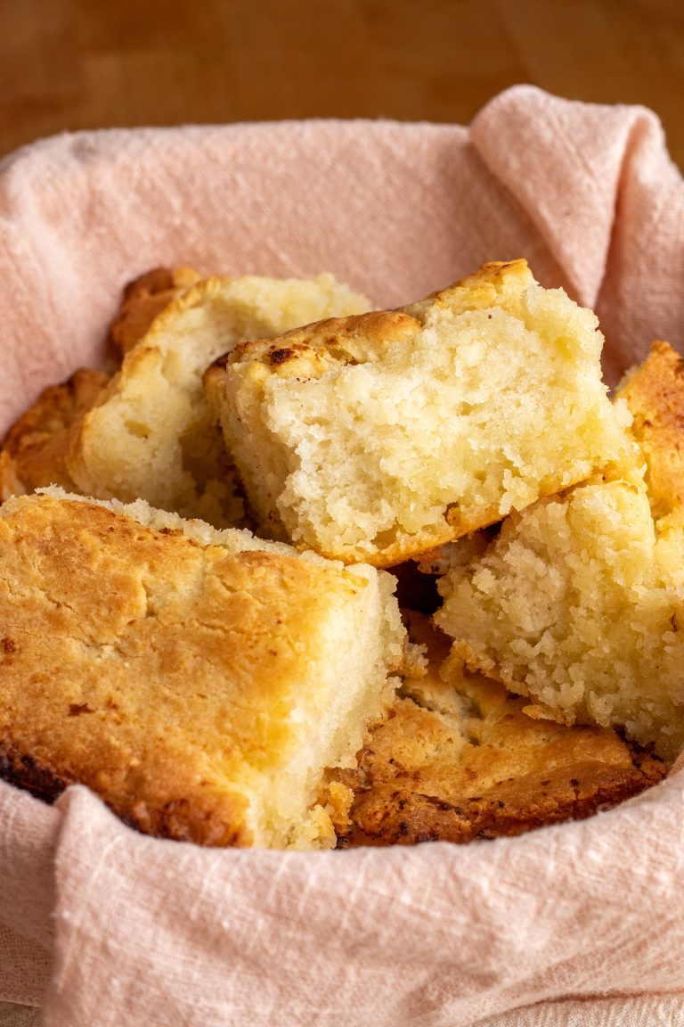 7. Place 8x8 baking dish on top of a sheet pan (I didn't the first time I tested this recipe, and butter dripped out of my pan and made the whole house smoky!), and bake at 425°F for 30-40 minutes - until the batter is set and the biscuits are golden brown on top.