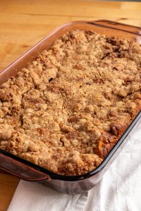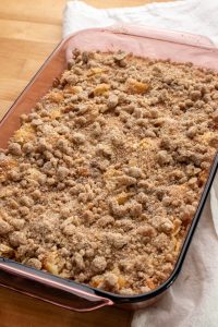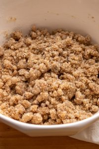 - Keep the streusel in the fridge until you’re ready to bake.