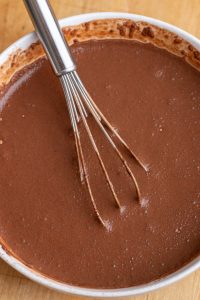 - Pour in the cocoa mixture, heavy cream, and vanilla paste, and whisk until fully combined.
